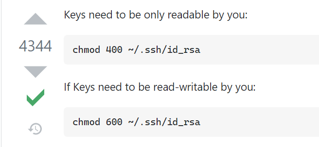 paradise@PradiseXPS:~/.ssh$ ll total 32 drwx------ 1 paradise paradise 512 Jan 12 10:07 ./ drwxr-xr-x 1 paradise paradise 512 Dec 30 2020 ../ drwxr-xr-x 1 paradise paradise 512 Jan 12 10:06 .ssh/ -rwxr-xr-x 1 paradise paradise 399 Jan 12 10:07 authorized_keys* -rwxr-xr-x 1 paradise paradise 958 Jan 12 10:07 config* -rwxr-xr-x 1 paradise paradise 1675 Jan 12 10:07 gitee_id_rsa* -rwxr-xr-x 1 paradise paradise 404 Jan 12 10:07 gitee_id_rsa.pub* -rwxr-xr-x 1 paradise paradise 1675 Jan 12 10:07 github_id_rsa* -rwxr-xr-x 1 paradise paradise 404 Jan 12 10:07 github_id_rsa.pub* -rwxr-xr-x 1 paradise paradise 1675 Jan 12 10:07 id_rsa* -rwxr-xr-x 1 paradise paradise 402 Jan 12 10:07 id_rsa.pub* -rw-r--r-- 1 paradise paradise 12712 Jan 12 10:07 known_hosts paradise@PradiseXPS:~/.ssh$ ssh 146 @@@@@@@@@@@@@@@@@@@@@@@@@@@@@@@@@@@@@@@@@@@@@@@@@@@@@@@@@@@ @ WARNING: UNPROTECTED PRIVATE KEY FILE! @ @@@@@@@@@@@@@@@@@@@@@@@@@@@@@@@@@@@@@@@@@@@@@@@@@@@@@@@@@@@ Permissions 0755 for '/home/paradise/.ssh/id_rsa' are too open. It is required that your private key files are NOT accessible by others. This private key will be ignored. Load key "/home/paradise/.ssh/id_rsa": bad permissions ubuntu@146.56.245.24's password:
